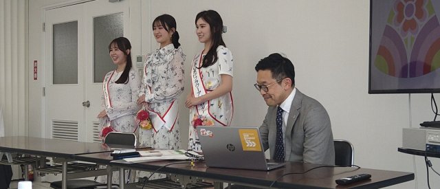 事業部の小川晋示の説明に続いて、フラワーフェスティバル2025のフラワーアンバサダーが登場しました。