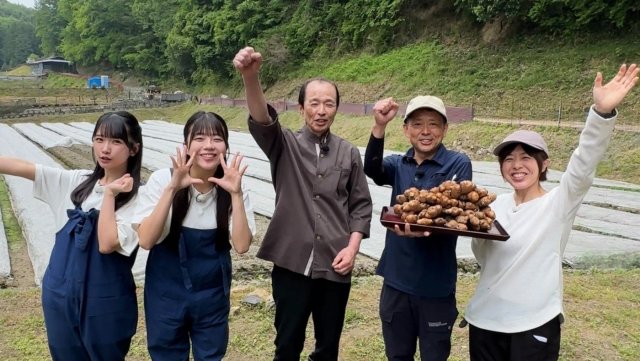 左から STU48高雄さやか 工藤理子、酔心小松料理長、おのみち潮風生姜・原田さんご夫妻