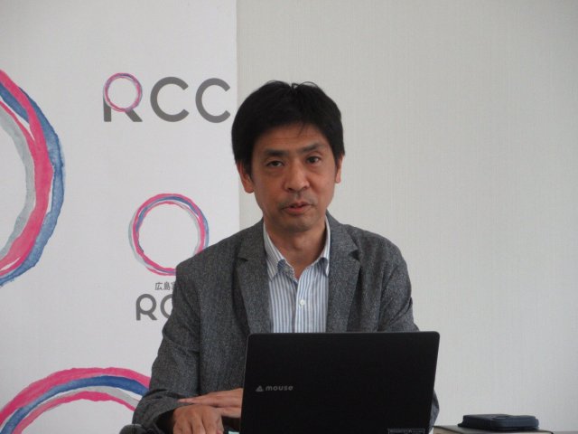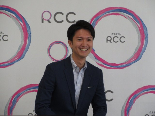 続いて、RCCラジオの新編成をラジオセンターの中岡秀晃がPR。