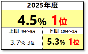 「イマナマ!」(3部)の個人全体視聴率は、特に2025年度の後半に大きくアップしています。下期(2025年10月~2026年3月)は5.3%と2位に0.7pt差をつけて6か月連続同時間帯トップです。