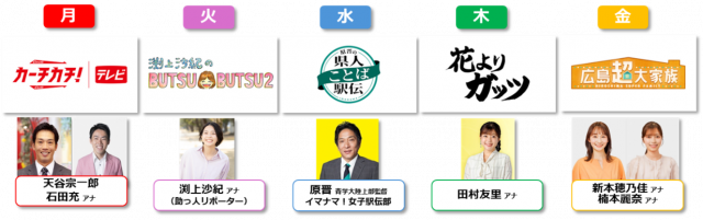 広島の最新ニュースや安全安心につながる情報を扱う「Life」、さらに18時30分頃からはカープ情報や原晋の県人ことば駅伝、RCCアナウンサーが県内各地をめぐる企画のエンタメコーナーを広島の視聴者に届けました。