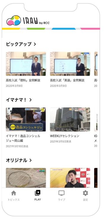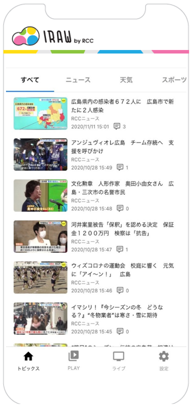 中国放送(RCC)は、新たなスマートフォン向けアプリケーションとして「IRAW by RCC」をリリースしました。自社の持つ多数のコンテンツを統合して発信することで、Webの世界においても発信力・存在感を高め、広島を代表するメディアアプリを目指します。